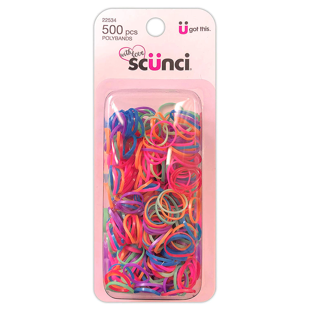 Scunci Cola De Polietileno Para Niña Poly Bands No Se Enreda Ni Daña El Cabello Colores Surtidos. Contenido 500 Piezas.